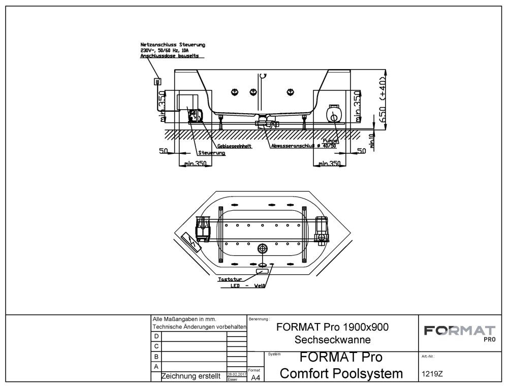 FORMAT Pro 6-Eck-Poolwanne 190 x 90 cm, Comfort