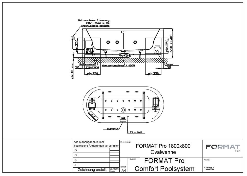 FORMAT Pro Oval-Poolwanne 180 x 80 cm, Comfort
