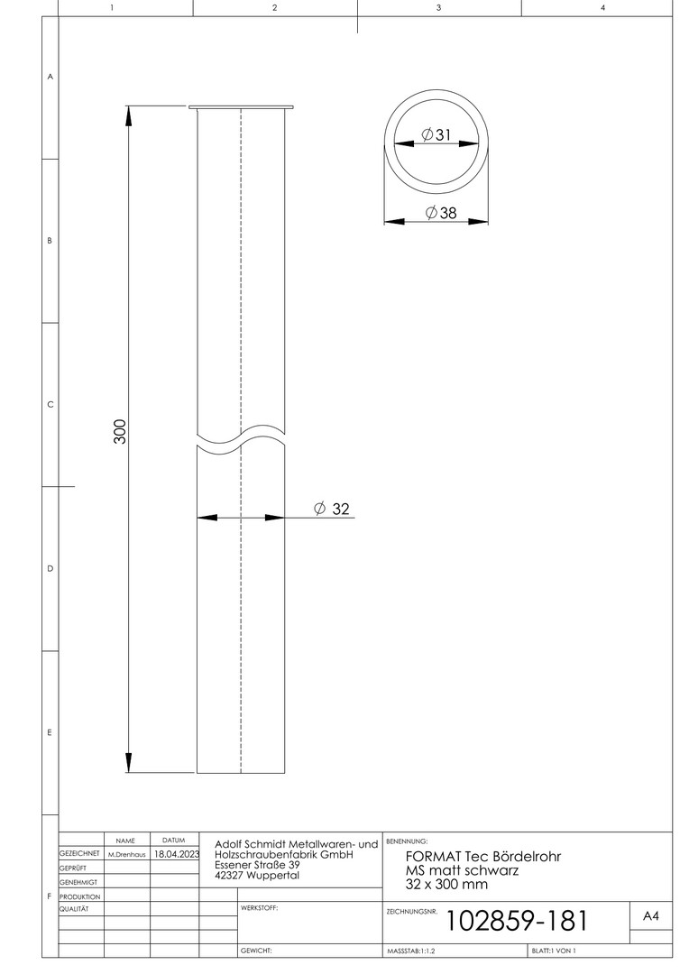 FORMAT Tec Bördelrohr 32x300mm, Messing, mattschwarz