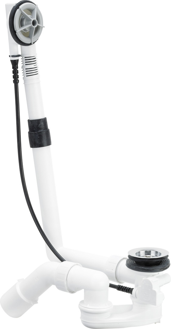 nur 33 mm Platzbedarf hinter Badewanne, ohne: Drehrosette, Überlaufrosette, Ventilkegel, Zulaufflansch, Geruchverschluss, Ablaufbogen 45°, Ventil verchromt, Sperrwasserhöhe 50 mm, Ablaufleistung Anstauhöhe 300 mm 0,92 l/s, Überlaufleistung Anstauhöhe 60 mm über Mitte Überlaufloch 0,63 l/s, nach DIN EN 274