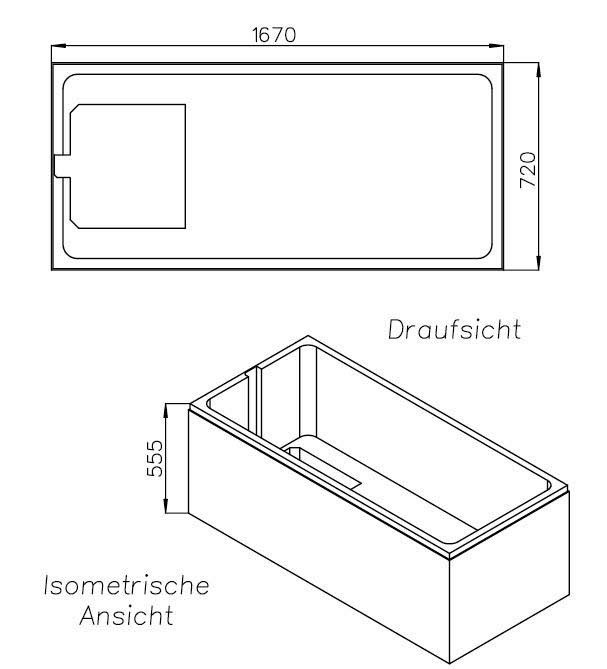 FORMAT Tec Wannenträger Standard 170 x 75 cm, rechteckig, mit 2 geraden Seiten