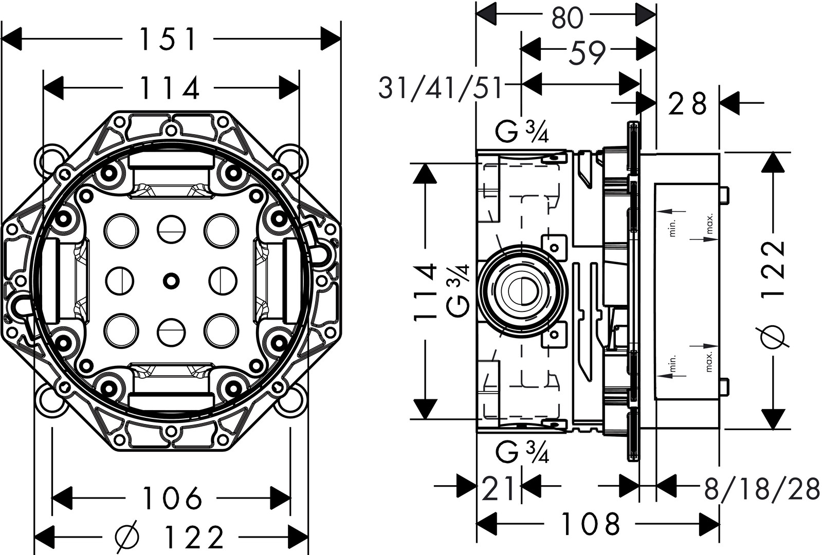 FORMAT UP-Grundkörper ibox universal DN 20, für UP-Brause-Wannen-Thermostat