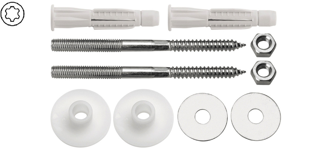 Waschtisch-/Urinal-/Schwerlast-Befestigung BB / BWB / SL, Tp 700, mit Muttern, Unterlegscheiben, Profi-Verknotungsdübel, Bundhülsen, Stockschrauben Stahl verzinkt