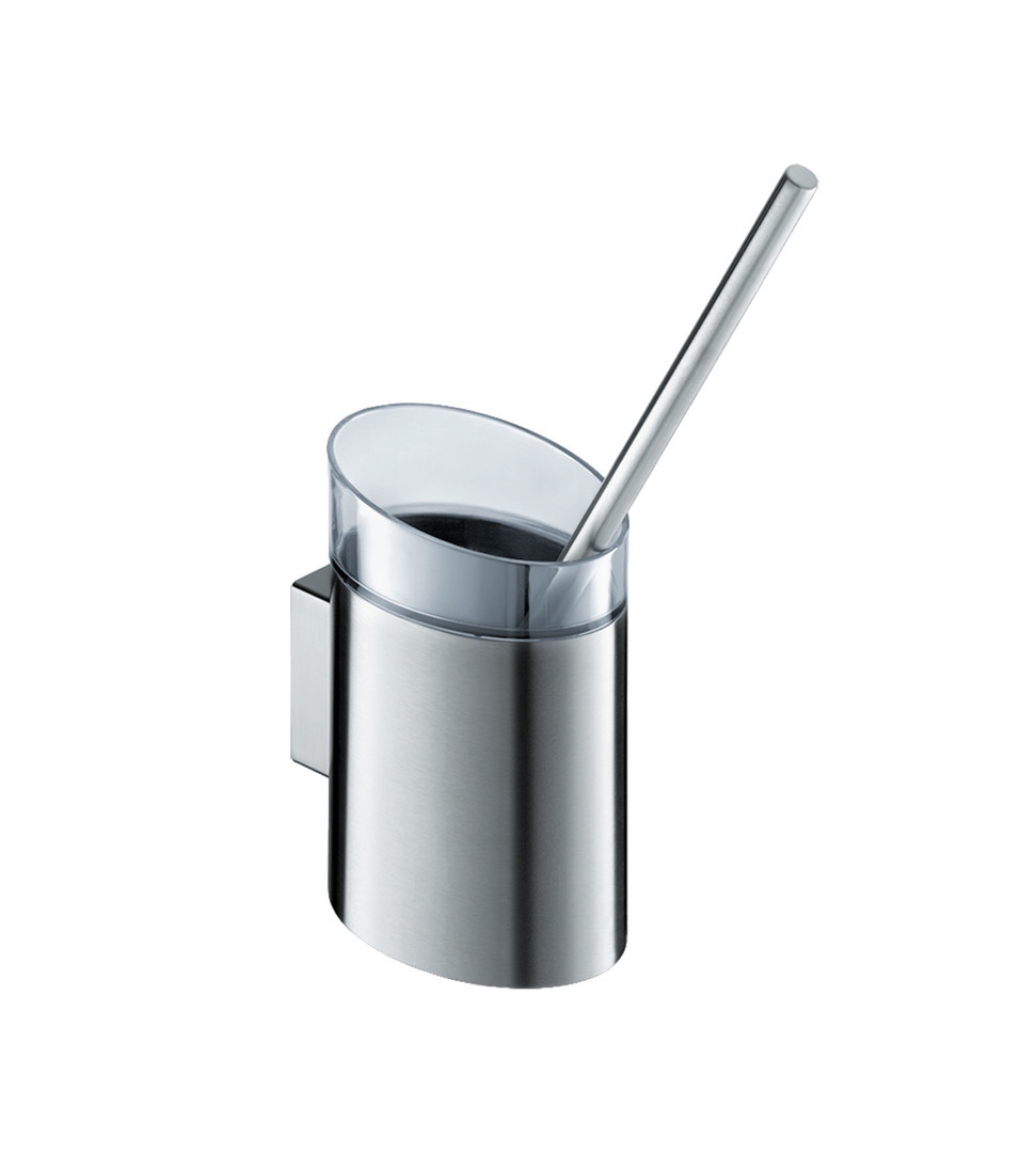 in durchgängigem, reduktivem Edelstahldesign und Kunststoff (ABS), zur Wandmontage, Bürstenkopf aus Nylon, austauschbar, Bürste wird automatisch zentriert und positioniert für Bewegungskonforme Entnahme, große Einstecköffnung, abnehmbarer Bürstenbehälter, verdeckte Befestigung
