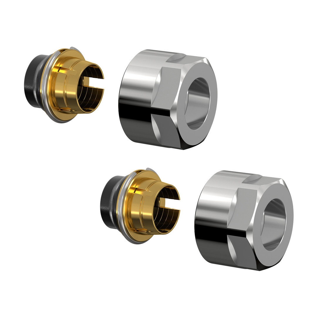 2x Klemmverschraubungen zum Anschluss von Design-Badarmaturen, für Kupferrohre (blank vernickelt, verchromt), C-Stahlrohre und Edelstahlrohre, passend für G 3/4 M Eurokonus, elastisch dichtend, verlängerter Klemmring für hohe Auszugskräfte, keine Stützhülsen erforderlich, Mutter SW 27, mit Festanschlag, 2-Stufen-Funktion: Dichten-Klemmen, Dichtmaterialien aus EPDM, max. Betriebstemperatur 110 °C Dauertemperatur/130 °C kurzzeitig, max. Betriebsdruck 10 bar
