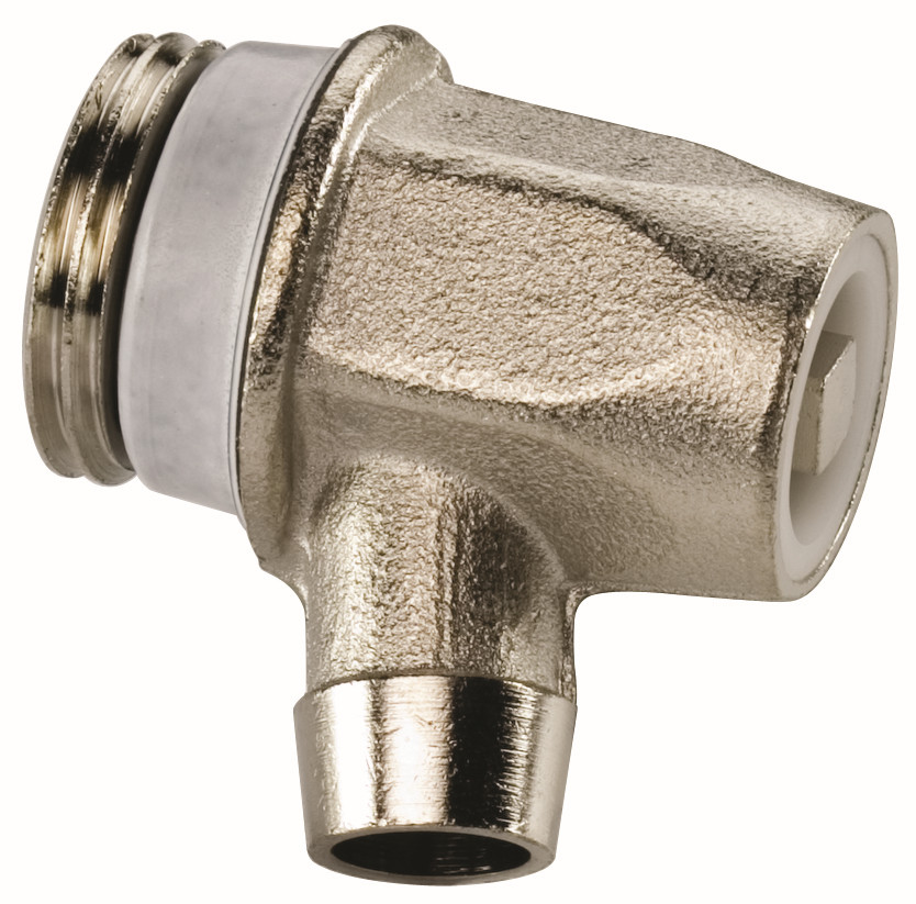für Heizkörper, Auslauftülle für Kunststoffschlauch, selbstdichtend mit Gewindeschneiddichtung, Dichtmaterialien aus EPDM, max. Betriebstemperatur: 110 °C Dauertemperatur/130 °C kurzzeitig, max. Betriebsdruck 10 bar