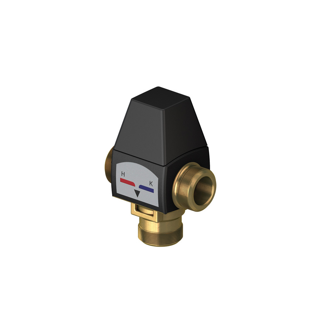 thermostatischer Wassermischer mit einem Einstellbereich von 35-60 °C für Warmwasser oder Temperaturbegrenzung in der Heizung, Betriebsdruck max. 10 bar.