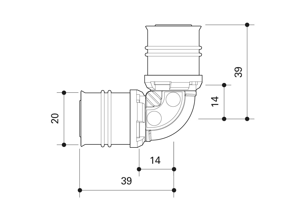Fränkische Bogen alpex 20 x 20 mm, 90Grad, PPSU