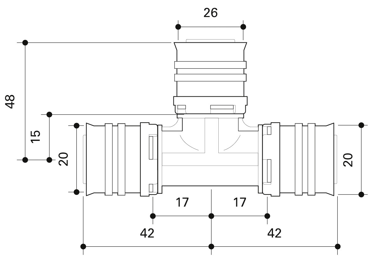 Fränkische T-Stück alpex F50 PROFI 20 x 26 x 20 mm, PPSU, reduziert