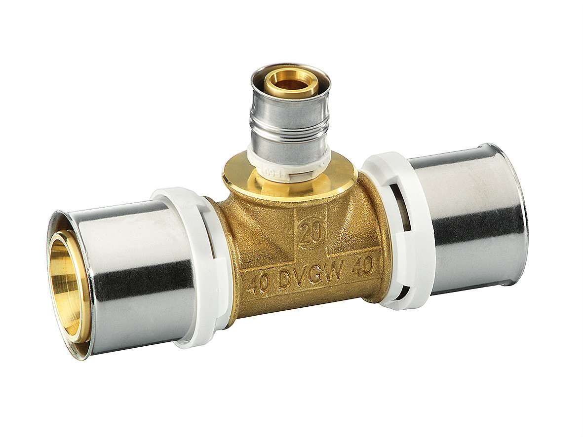 zur Installation von Trinkwasser- und Heizungssystemen mit weißen Fixierringen mit integrierten Sichtfenstern, fixierten Edelstahlpresshülsen und Leckagefunktion, verpressbar mit der F-Kontur, die Dimensionen kleiner gleich 32 mm auch mit den Presskonturen TH, U, H, VP