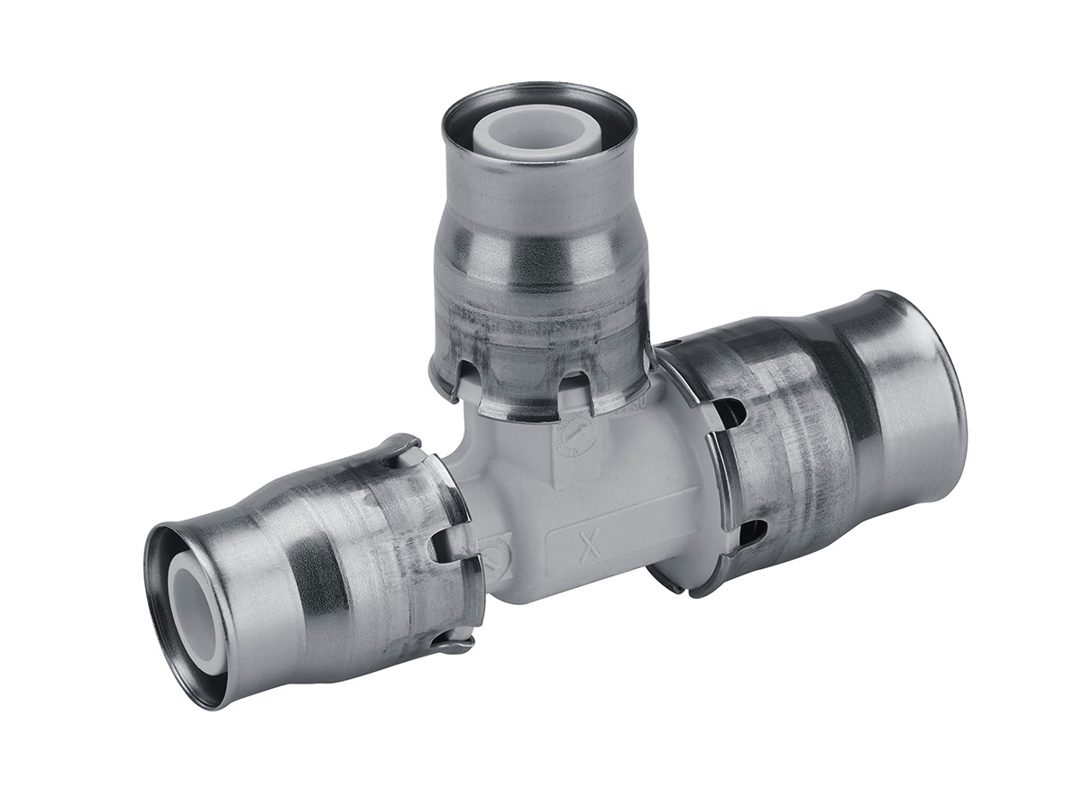 zur Installation von Trinkwasser- und Heizungssystemen mit fixierten Edelstahlhülsen und optischen Signalringen für die Einsteckkontrolle, die Verbindung ist während der Montage in den Dimensionen 16 und 20 mm mit Spezialwerkzeug lösbar