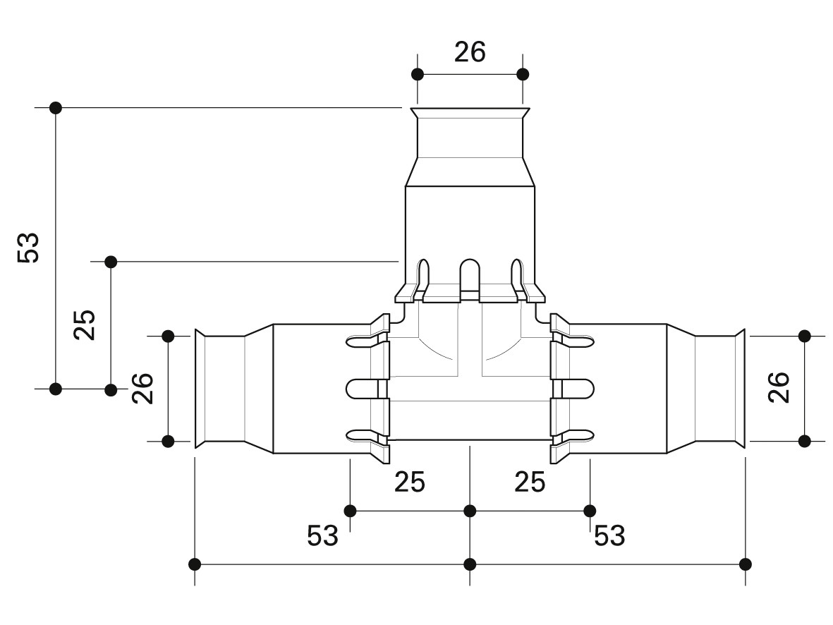 Fränkische T-Stück alpex-plus 26 x 26 x 26 mm, reduziert, PPSU
