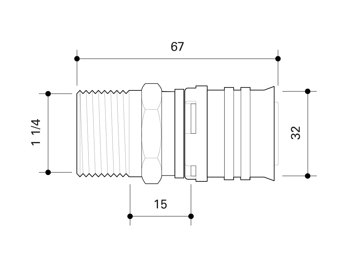 Fränkische Übergang alpex 32 mm x R 1 1/4, mit Außengewinde, Siliziumbronze
