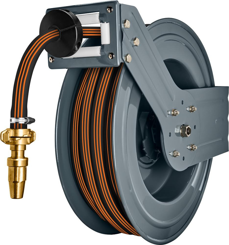 • Mit automatischem Rückzug des Schlauchs und schonender Schlauchführung
