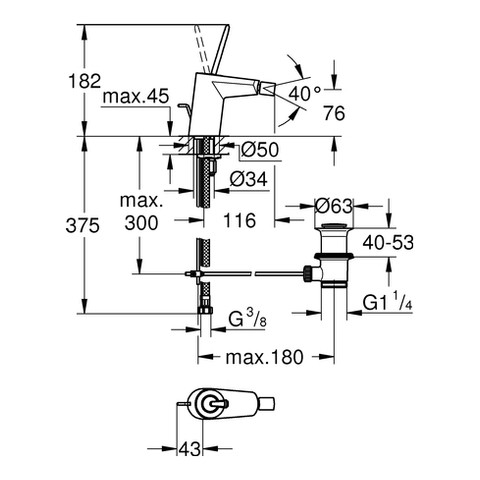 GROHE Bidet-Einhebelmischer Eurodisc Joy 1/2", mit Ablaufgarnitur, chrom