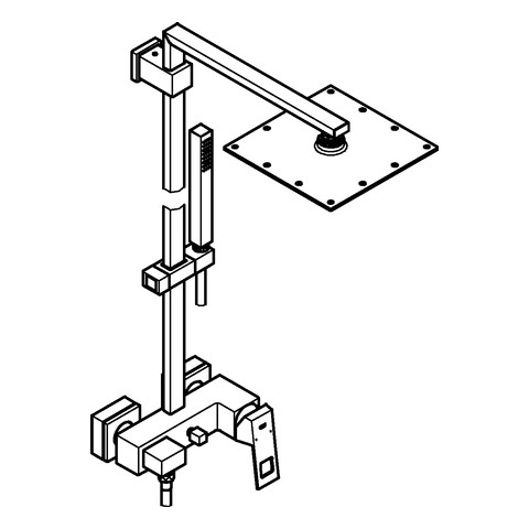 bestehend aus: Brausearm, Aufputz-Einhebel-Brausearmatur mit Umstellung, ermöglicht den Wechsel zwischen Kopfbrause Rainshower 230 Metall (27 479), Strahlart Rain, mit Kugelgelenk, Drehwinkel +/-15°, Euphoria Cube Stick Handbrause (27 698), Strahlart Rain, in der Höhe verstellbar mittels Gleitelement, Brauseschlauch Silverflex 175 cm (28 388), SilkMove 3,5 cm Keramikkartusche, DreamSpray Strahlbild, Long-Life Oberfläche, SpeedClean Antikalk-System, innenliegende separate Wasserführung, TwistSpop gegen Verdrehen des Brauseschlauchs, für Durchlauferhitzer ab 18 kW/h geeignet, Mindestdurchfluss 7 l/min
