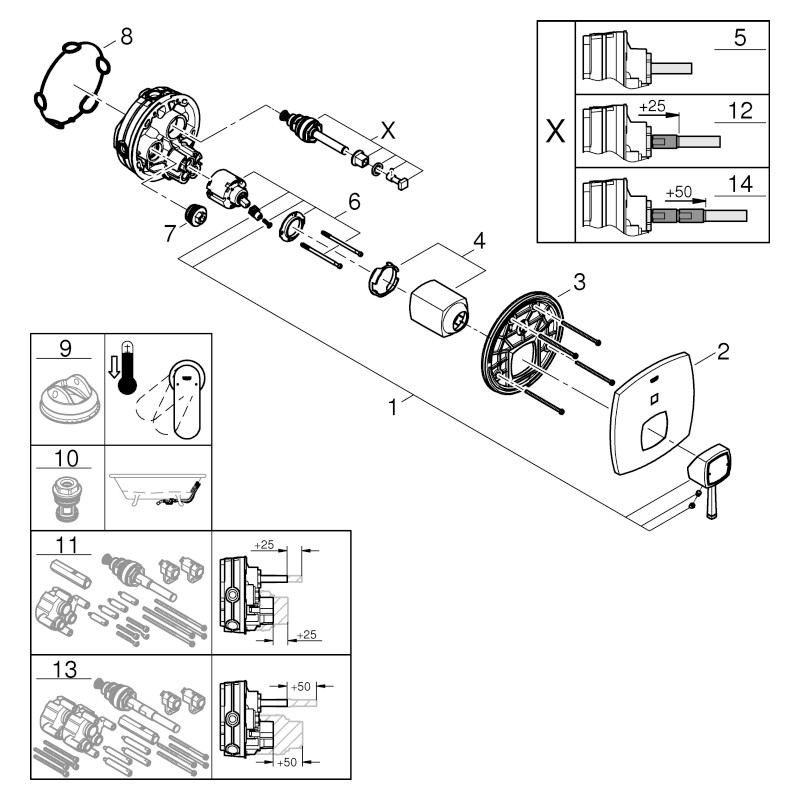 GROHE Fertigmontageset Grandera UP-Wannen-Einhebelmischer, chrom/gold W294378
