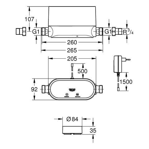 1x GROHE Sense Guard für Einfamilienhäuser erfasst Rohrbrüche, Mikroleckagen, Frostgefahr und ungewöhnlichen Wasserverbrauch, Absperrfunktion um Wasserschäden zu verhindern (automatisch, manuell und über App fernsteuerbar) erfasst die Durchflussmenge, den Wasserdruck und misst die Systemtemperatur zur Indikation von Frostgefahr, misst den Wasserverbrauch Benachrichtigungen erhalten und Einstellungen über die GROHE ONDUS App anpassen, Statusanzeige über LED, Summer und GROHE ONDUS App Wireless LAN 2,4 GHz, WPA/ WPA2 geschützt, horizontale oder vertikale Montage direkt hinter dem Wasserzähler, 1x intelligente Wassersteuerung mit 1" Anschlüssen, Montageanschlüsse 3/4", Verlängerungskabel 0,7 m, Anschlussleitung Typ G, Verwendung von Wandmontage-Set 22 501 000 wird empfohlen, Komponente muss separat bestellt werden, Armaturengruppe I nach DIN 4109, nur an Kaltwasserleitung zu installieren, 3x GROHE Sense für Wireless LAN, batteriebetrieben, automatischer Alarm bei Überschwemmungen oder Frostrisiko erfasst Raumtemperatur und relative Luftfeuchtigkeit, Benachrichtigungen erhalten und Einstellungen über die GROHE ONDUS App anpassen, Statusanzeige über LED, Summer und App auf ebenem, nicht-leitenden Untergrund zu platzieren, Wireless LAN 2,4 GHz, WPA/ WPA2 geschützt, 9x AAA Batterien