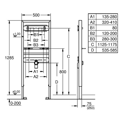 GROHE Waschtisch-Element Rapid SL BH 1,30 m, für Wandarmatur