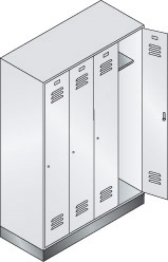 Garderobenschrank Classic B1190xT500xH1850 mm RAL 7035, 4 Abteile mit 100 mm hohem Sockel