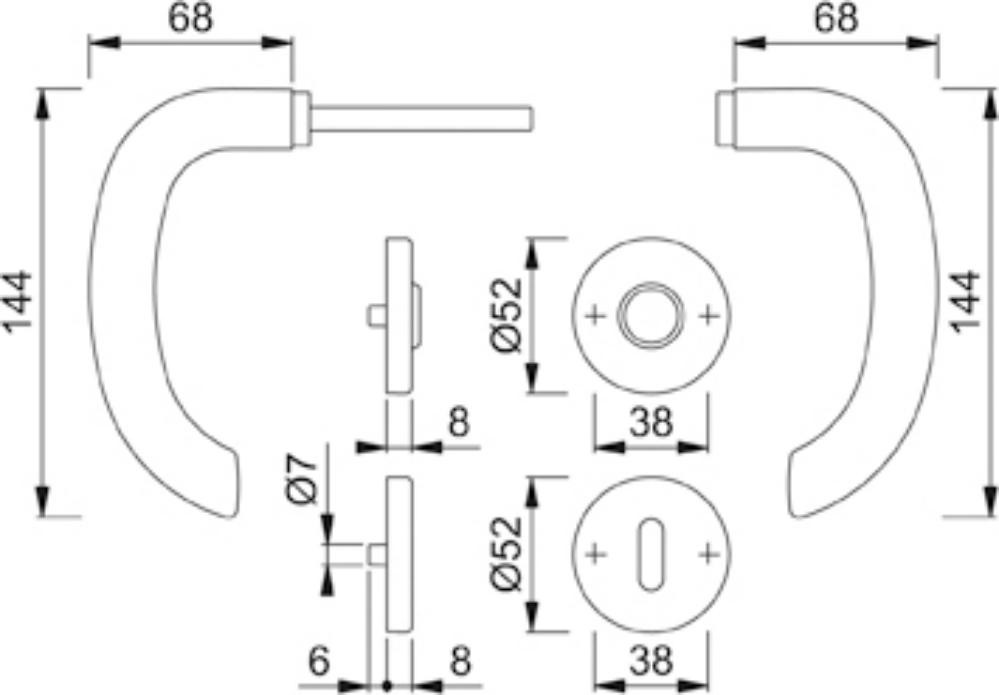 • Türgriffe mit HOPPE-Schnellstift-Verbindung (mit HOPPE-Vollstift)