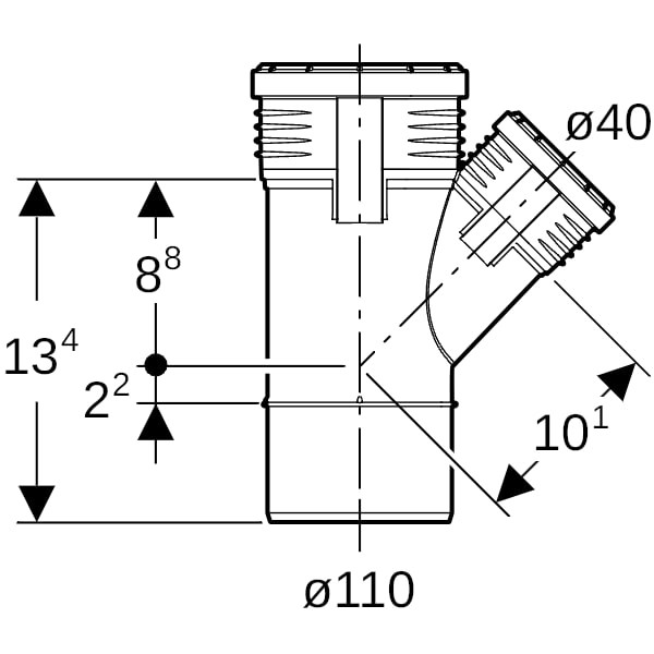 Geberit Abzweig Silent PP DN 100/40, 45Grad, schalloptimiert