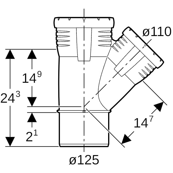 Geberit Abzweig Silent Pro DN 125/100, 45Grad, hochschalldämmend
