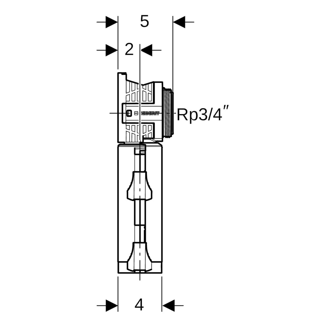 Geberit Anschlussdose PushFit DN 15/20, Ø 20 mm, Rp 3/4, 90Grad, mit Schnellkupplung