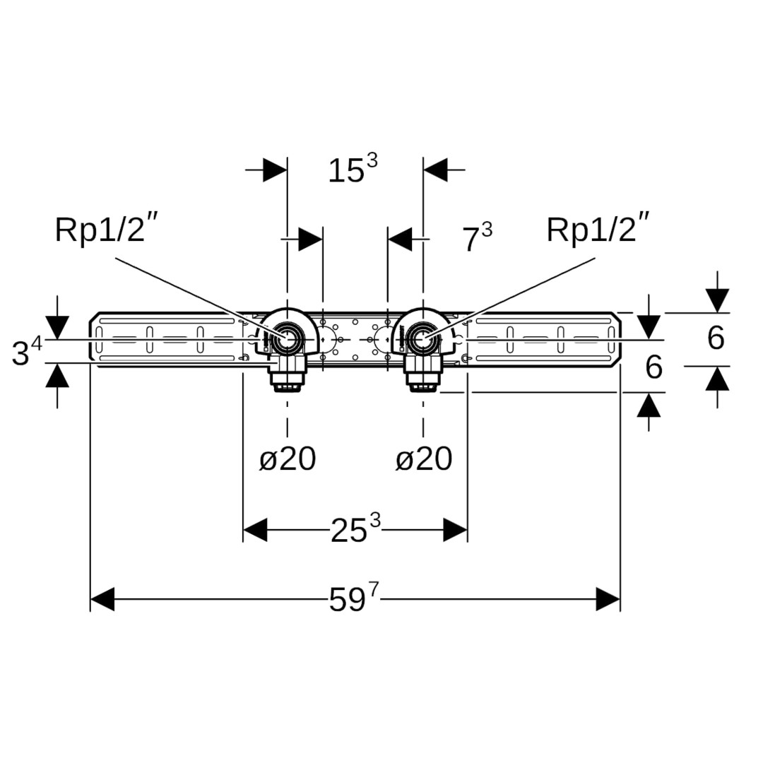 Geberit Anschlusswinkel PushFit Ø 20 mm x Rp 1/2, 90Grad, 2-fach, 52mm, vormontiert, Messing