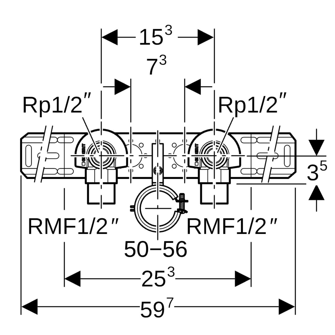 Geberit Anschlusswinkel RMF 1/2 x Rp 1/2, 5,2 cm, 90Grad, 2-fach mit Ablaufrohrschelle