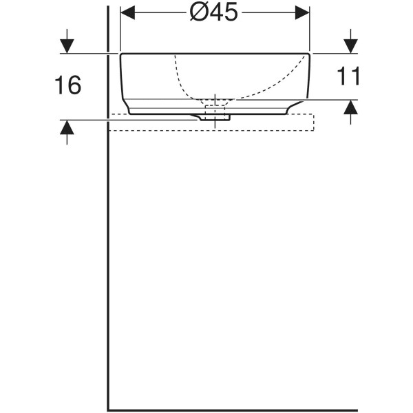 Geberit Aufsatz-Waschtisch VariForm d= 45cm, mit Hahnlochbank, mit Überlauf, rund, weiß KeraTect W51160