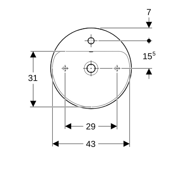Geberit Aufsatz-Waschtisch VariForm d= 45cm, mit Hahnlochbank, mit Überlauf, rund, weiß