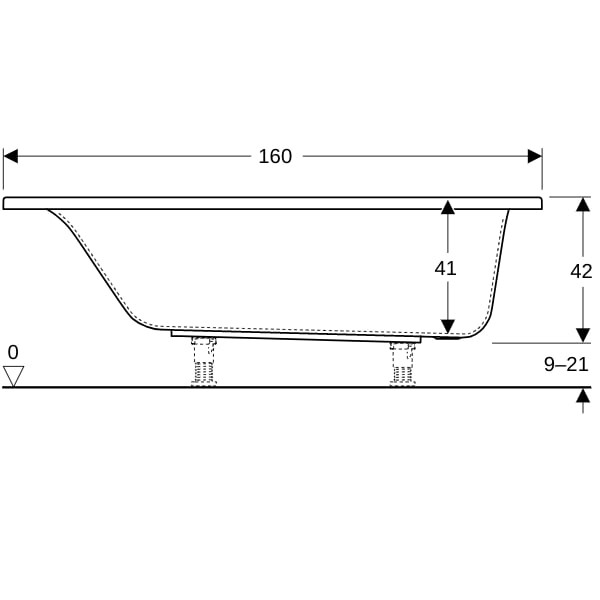 Geberit Badewanne Renova Plan 160 x 75 cm, Rechteck, Abgang am Fußende, weiß W904999