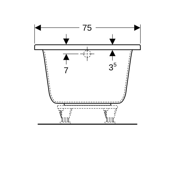 Geberit Badewanne Renova Plan 170 x 75 cm, Rechteck, Abgang am Fußende, weiß W905000
