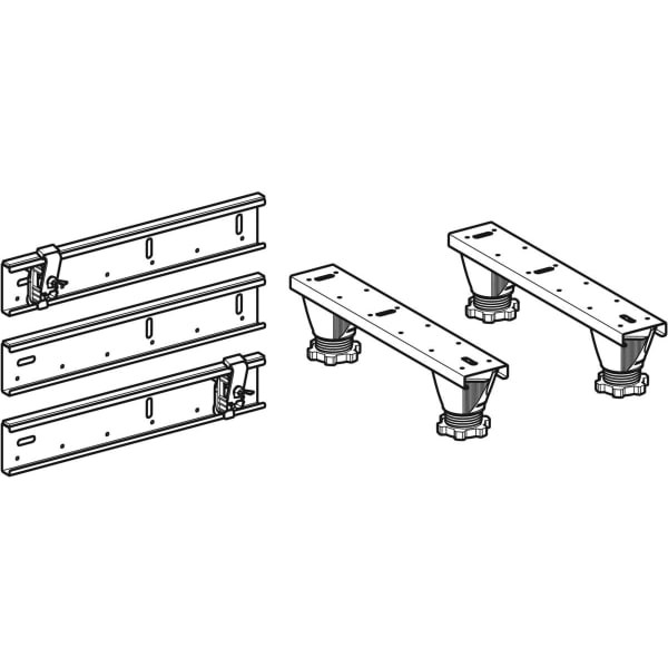zum Auflegen, Höheneinstellen und Befestigen von Badewannen, Füße verstellbar 8,7–20,7 cm, werkzeuglos höhenverstellbar, bestehend aus 4x Füße, höhenverstellbar, 2 Traversen, 3 Traversen schallentkoppelt, 2 Wandanker, mit Befestigungsmaterial