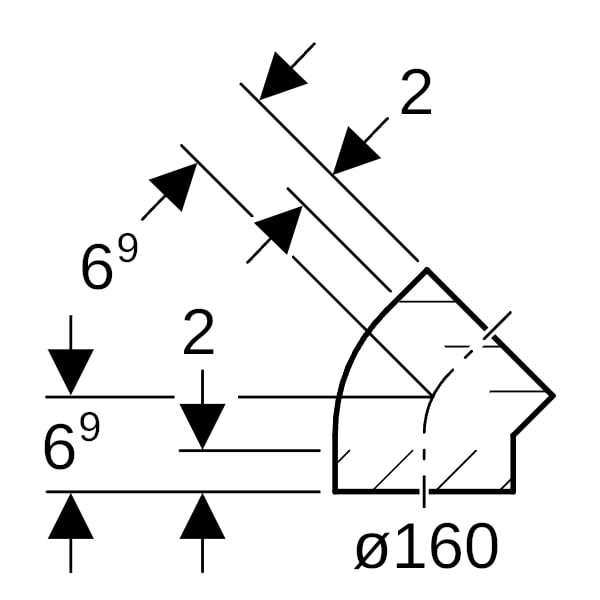| Rohraußendurchmesser Anschluss 2 | 160 mm |