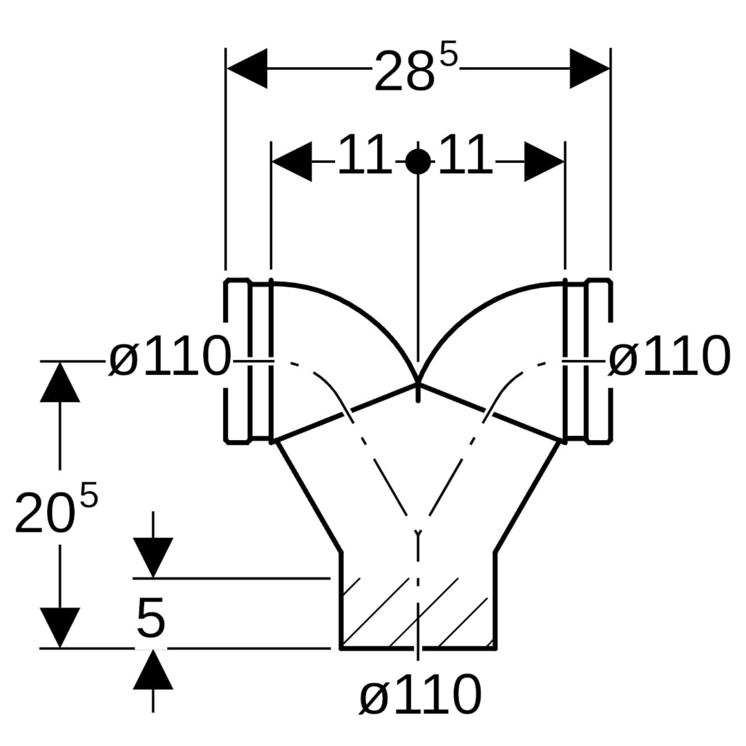 Geberit Doppelanschlussbogen PE DN 100/100/100, 90°, PE-HD, für Wand-WC
