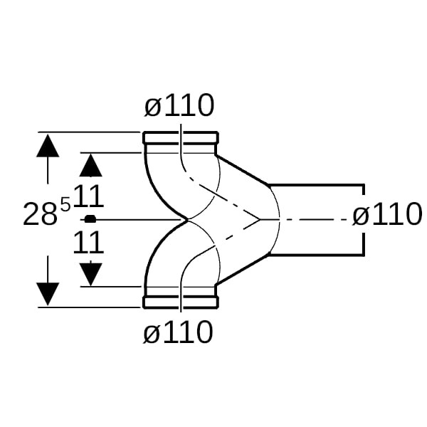 Geberit Doppelanschlussbogen PE DN 100/100/100, 90°, PE-HD, horizontale Montage, gekröpft W894524
