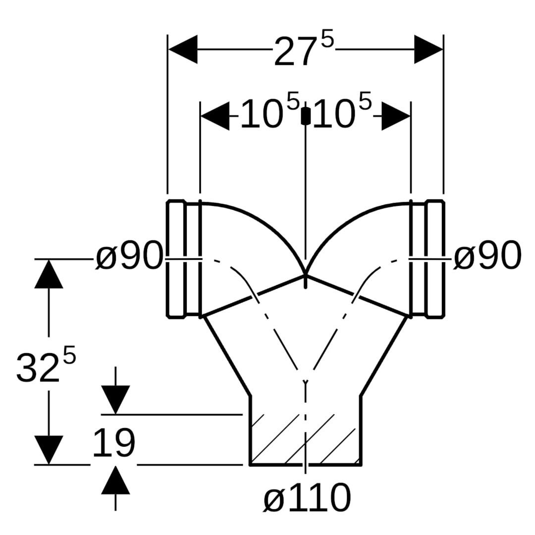 Geberit Doppelanschlussbogen PE DN 100/100/100, 90°, PE-HD, für Wand-WC W894523