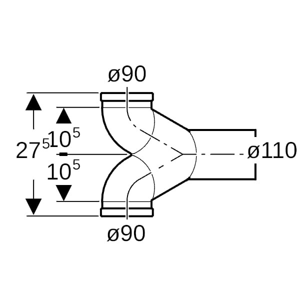 Geberit Doppelanschlussbogen PE DN 100/100/100, 90°, PE-HD, horizontale Montage, gekröpft W894524