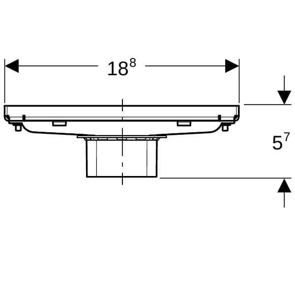 zur Entwässerung bodenebener Duschen, zum Einbau im Raum oder an der Wand, zum Einbau in Dünnbettmörtel, für Verbundabdichtungen, Fliesenaufbau Boden 13-35 mm, Höhe Flieseneinlage mit Fliesenkleber 0,8 cm, Duschrinne in Höhe, Neigung und Versatz ausrichtbar, Wasserableitung oberhalb der Verbundabdichtung, bestehend aus Kammeinsatz, Einlaufstutzen mit Ausgleichsring