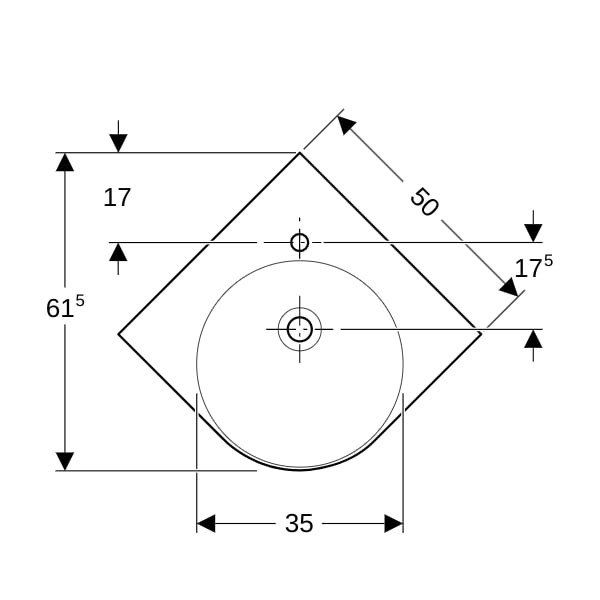 Geberit Eck-Waschtisch Renova Compact 69,5 x 61,5 cm, mit Hahnloch, mit Überlauf, weiß W35950