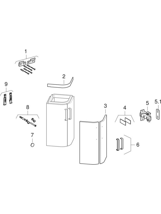 Geberit Eckhandwaschbecken-Unterschrank Renova Compact 42,5x60,4x33cm, 2 Türen, lichtgrau hochglanz W452681