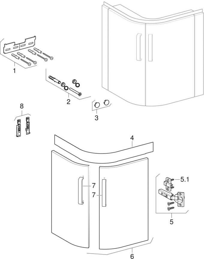 Geberit Eckwaschtisch-Unterschrank Renova Compact 69 x 60,4 x 55 cm, 2 Türen, lichtgrau hochglanz W908838