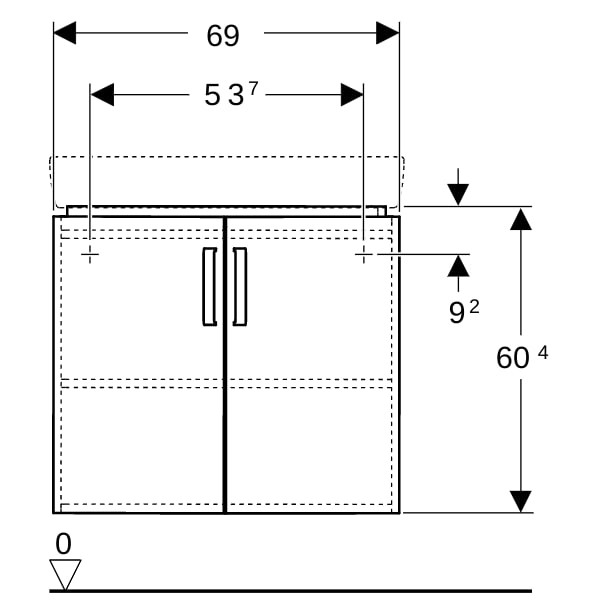 Geberit Eckwaschtisch-Unterschrank Renova Compact 69 x 60,4 x 55 cm, 2 Türen, weiß hochglanz W908837