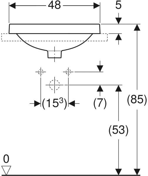 Geberit Einbau-Waschtisch VariForm d= 48cm, mit Hahnlochbank, ohne Überlauf, rund, weiß KeraTect W51066