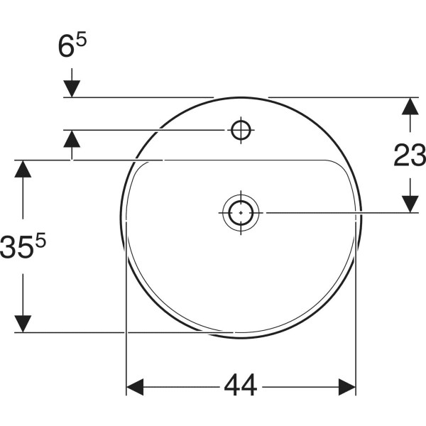 Geberit Einbau-Waschtisch VariForm Ø 48 cm, mit Hahnlochbank, ohne Überlauf, rund, weiß W36557