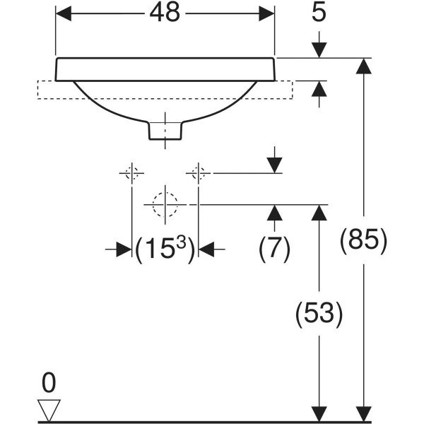 Geberit Einbau-Waschtisch VariForm Ø 48 cm, mit Hahnlochbank, ohne Überlauf, rund, Unterseite glasiert/weiß W36559
