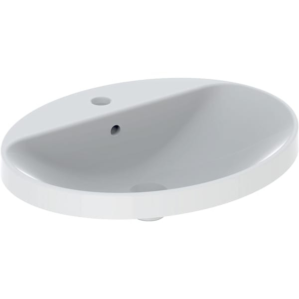 Geberit Einbau-Waschtisch VariForm 60 x 48 cm, mit Hahnlochbank, mit Überlauf, oval, weiß KeraTect W36585