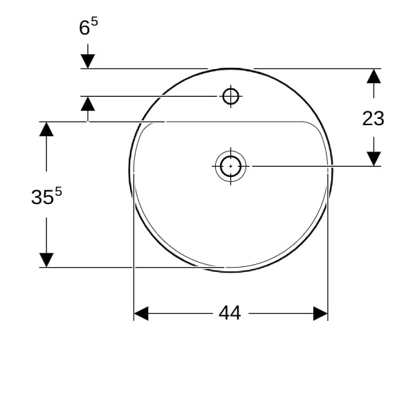 Geberit Einbau-Waschtisch VariForm Ø 48 cm, mit Hahnlochbank, ohne Überlauf, rund, Unterseite glasiert/weiß W36559